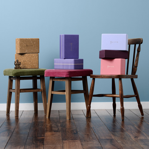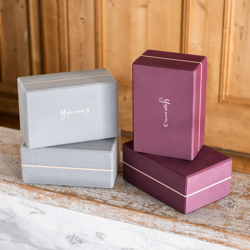 シンプルな形状ゆえにさまざまな活用ができるヨガブロック。ヨガワークスでは2素材2サイズで展開、それぞれ硬さや角のフィニッシュが異なります。同じタイプを2個セットで揃えておくことで、活躍の場が広がります。