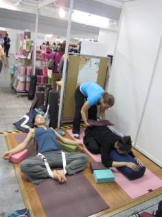 そんな中、沢山あるブースの中からヨガワークスのブースにお越し頂いた皆さま、本当にありがとうございました。初めてのヨガマットを求めて、2枚目のヨガマットやブロック、ボルスターをお試しに…。 と色んな方と触れ合うことができたスペースになりました。