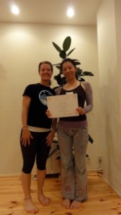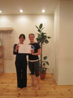 では【プロップスを使ってティーチングスキルアップ】からの振り替え受講された3名様が18時間を修了され、ドミニカ先生から修了書が授与されました。