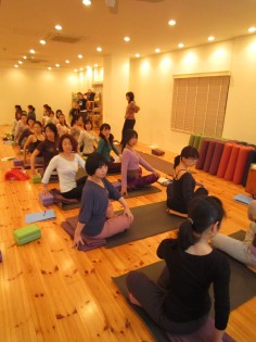 さて、ワークショップは、ウオームアップ(Bharadvajasana→Upavista Konasana)でスタート。