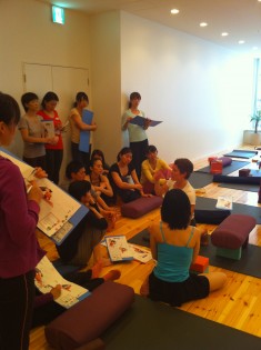 今回のワークショップでは、「マインドを穏やかにする前屈」をテーマに前屈3ポーズを実習しました。