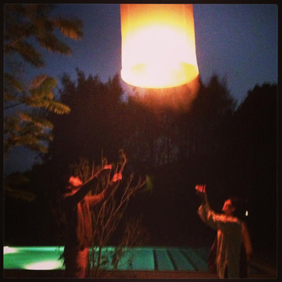 夜には、11月に行われる光の祭典「ロイクラトーン」にちなんで、「ほしはなビレッジ」では、おふたりのためだけに「コムロイ」と呼ばれる灯篭をあげるスペシャルな「おもてなし」をプレゼントしてくださいました。