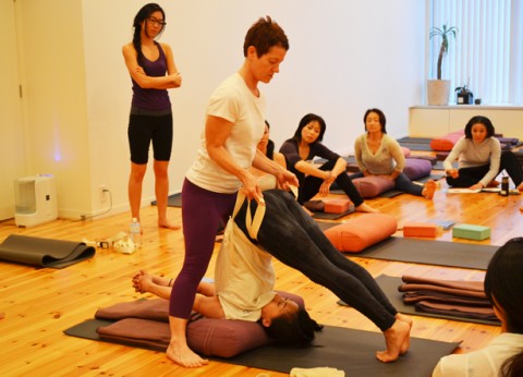 「本日行う2つのポーズは、内臓とマインドに絶大な効果があります」 とドミニカ先生。