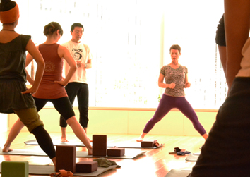 このワークショップでは、さまざまな場所でヨガを教えている皆さんがいるので、「壁」がない想定で進めていますが、壁があれば壁を使って意識づけをしてみてください。