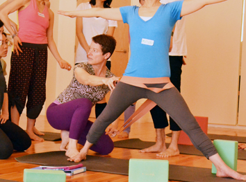 ドミニカ先生のアドバイスは、「手を触れるアジャストは、とてもパーソナルです。生徒との信頼関係も大事ですし、特に女性のインストラクターが男性生徒にハンズオンのアジャストをするのも、気を使う点です。私は男性の生徒には、ベルトを使っています」