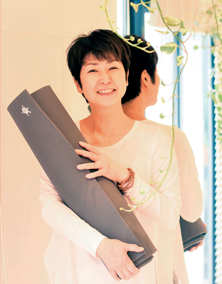 身の回りのものは自分の一部だと思っている。だからこそ納得のいく上質なものを選び、丁寧に向き合いたい。身近な物を大切に思い、丁寧に心をこめて手入れをすると、自信や力となって戻ってくる気がする。ヨガマットの最高峰【一生もの】と言われるこのマットは、無味無臭で機能的。使えば使うほど私色に染まっていく。広げる度にピンと背筋が伸び『さぁ始めるぞ』と気合が入る。どしっとした重量感、存在感あふれるダークな色合いからは高級感が漂う。『このマットにふさわしいか?』常に自問自答しながら自分を高めていきたい。