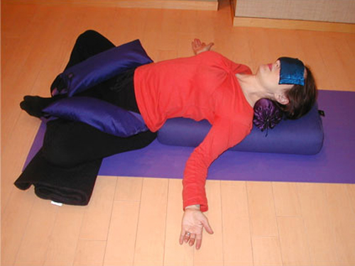 セルフ・プラクティスとして、リストラティブ・ヨーガのクラスで、就寝前に、また女性は月経中にも行えるポーズの1つです。