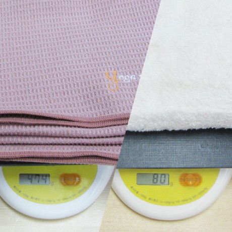 実験対象物 : 一般的なタオル(80g)、ヨガワークス ワッフルヨガラグ(474g)