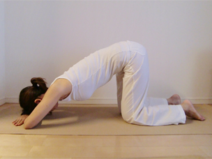 - 床に肘をつき手を重ね合せ、その上におでこを乗せて、ひと呼吸。